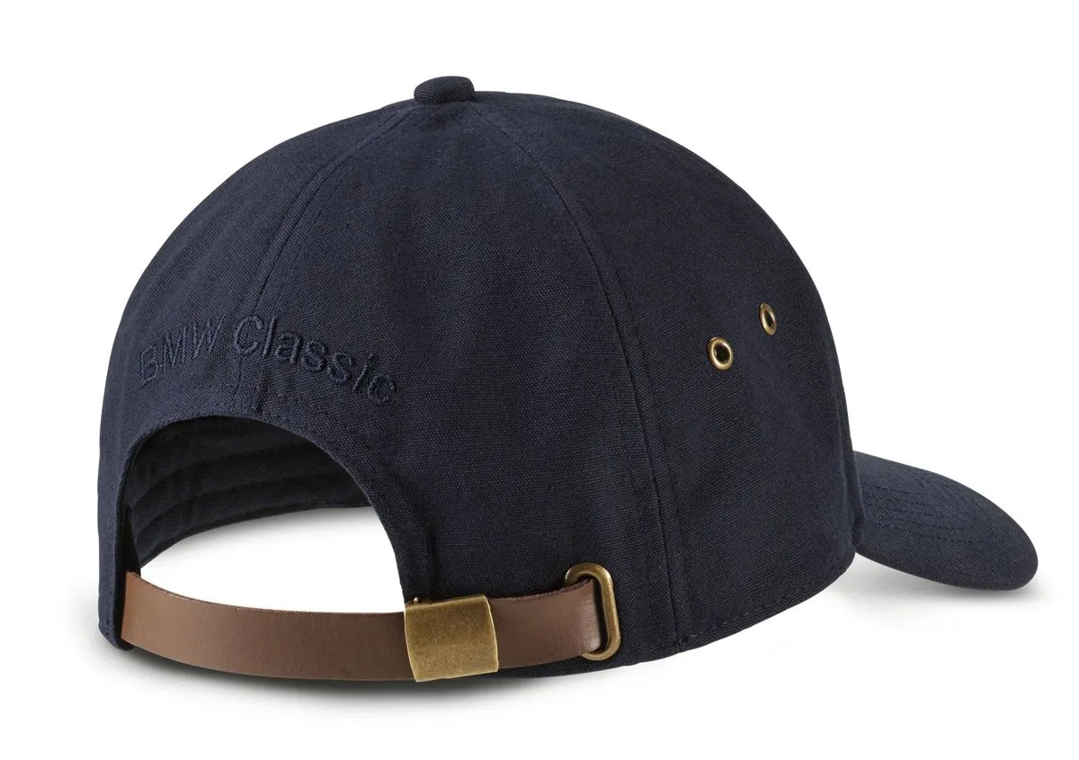 Бейсболка с вышитым историческим логотипом BMW Classic. Сзади регулировочный ремешок из натуральной кожи с металлической застежкой. Шестисекционная, с усиленной передней секцией. Отстрочка в 4 ряда в тон на козырьке. Материал: 100% хлопок. Один размер — 58 см. Цвет: темно-синий.