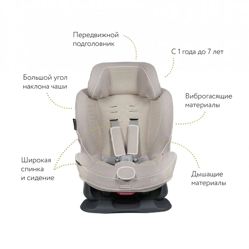 Кресло детское автомобильное Ailebebe Swing Moon (1-7 лет/9-25кг/70-120см), бежевое