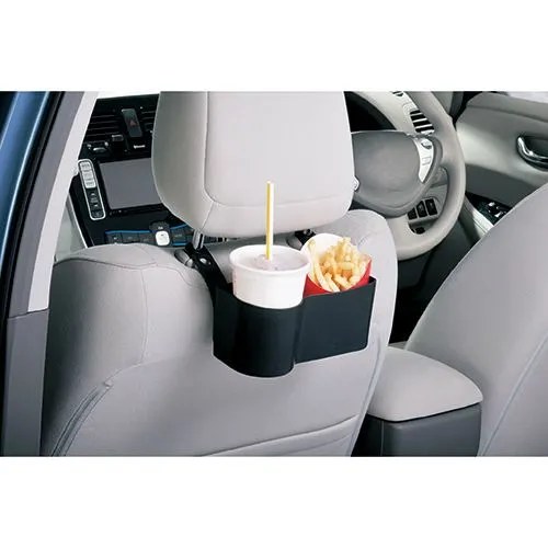 Стильный пластиковый держатель очень удобно использовать для размещения в нем мелких вещей, которые обычно не находят места в салоне автомобиля, а также для еды т напитков для пассажиров заднего сиденья. Крепится за подголовник переднего сиденья.