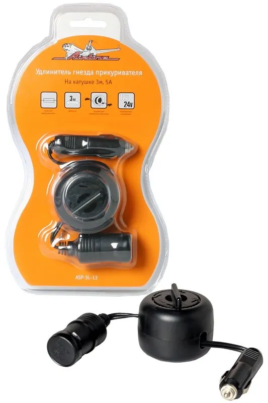 Удлинитель для розетки прикуривателя, позволяет подключать устройства с коротким шнуром питания на расстоянии до 3 м.