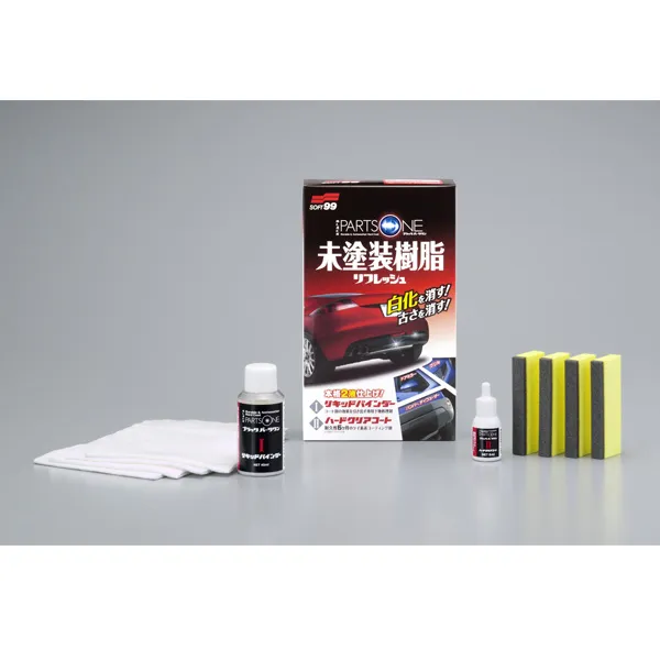 В комплект входят 2 средства: очиститель и покрытие. Очиститель быстро справляется с загрязнениями. Покрытие образует тонкий слой, который защищает пластик от воздействия внешних факторов и придает блеск.