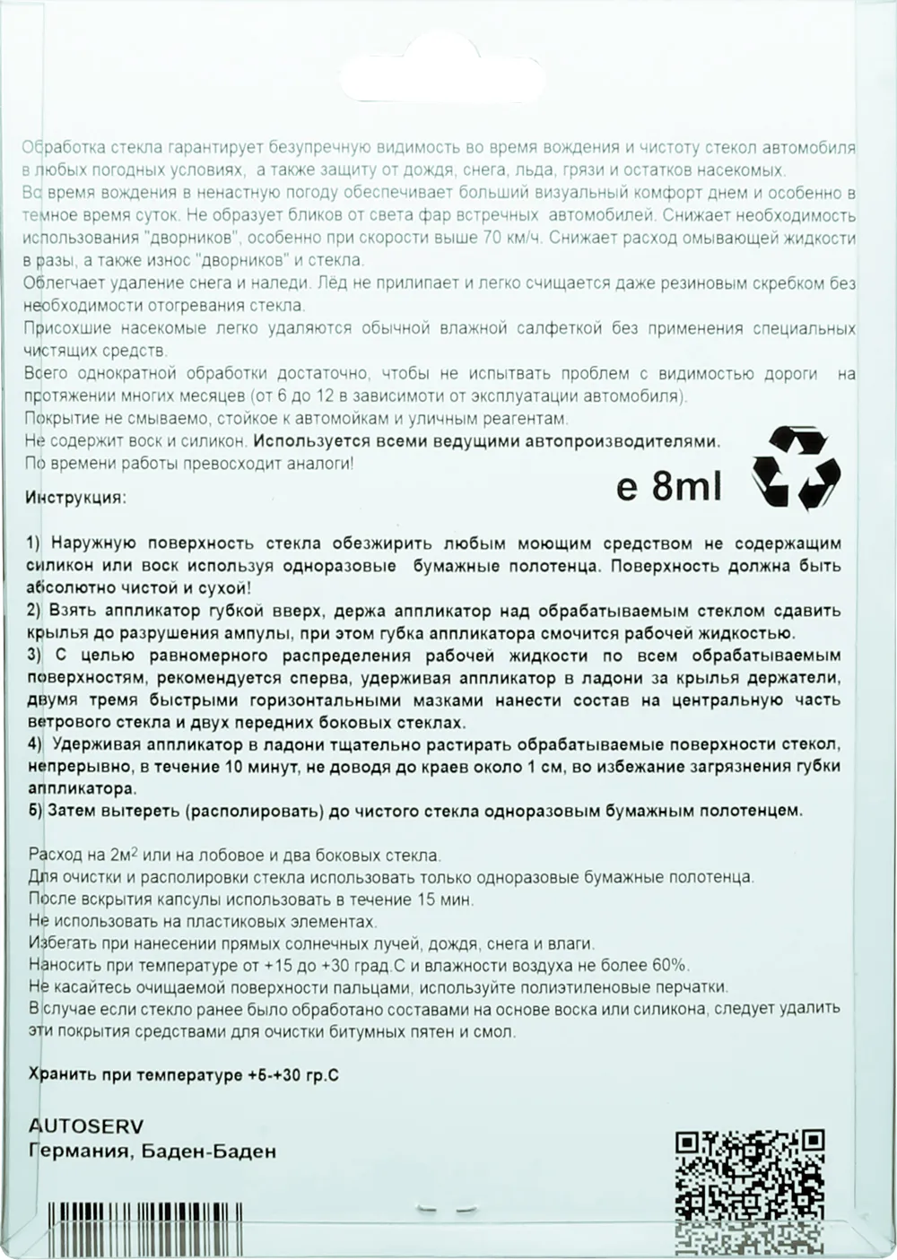 Продукт производится в Германии немецкой компанией "Autoserv", Он используется в штатном режиме на европейских автоконцернах таких как AUDI; BMW; CITROEN; LEXUS; VOLKSWAGEN; VOLVO, а также стоит в дилерских программах продажи стекла на замену и аксессуров к нему крупнейших производителей автостекла в мире - Sekurit (Европа), Asahi Glass Company (Япония), PPG (США).