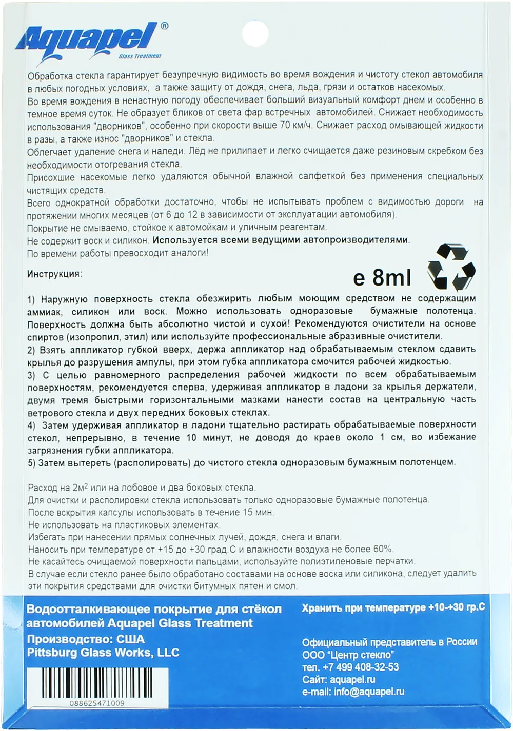 Антидождь нанопокрытие для стекол Ombrello/Aquapel