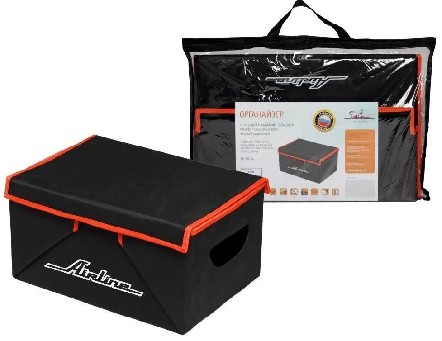 Органайзер с крышкой в багажник, складной 46*19*32 см (28л), черный/оранжевый