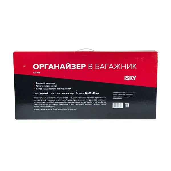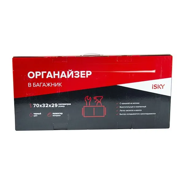 Органайзер с крышкой в багажник iSky, полиэстер, 70x32x29 см, черный