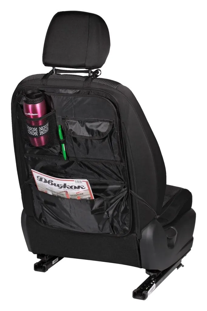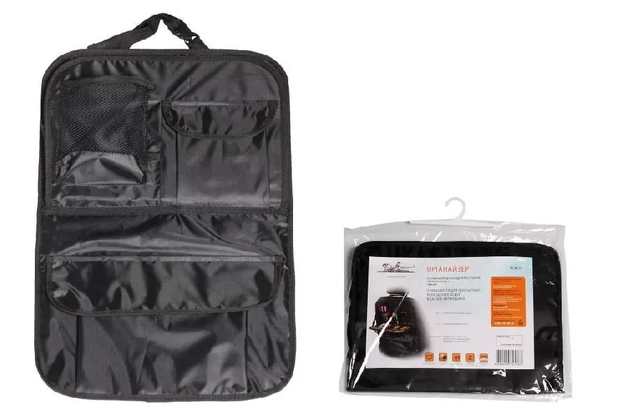 Многофункциональный компактный органайзер на спинку переднего сиденья оснащен удобной системой для хранения предметов различного назначения. На органайзере присутствует «откидной регулируемый столик», отдел для бумаг, карманы для ручек и канцелярских принадлежностей, отделы для гаджетов, а также карманы-подстаканники. Органайзер изготовлен из прочного и легко моющегося материала -100% полиэстера. >