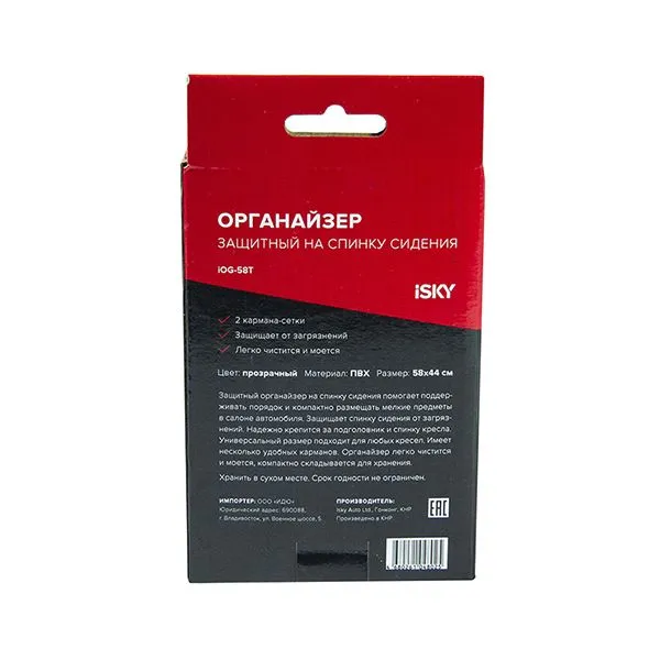 Органайзер на спинку переднего сиденья iSky, ПВХ, 58x44 см, прозрачный