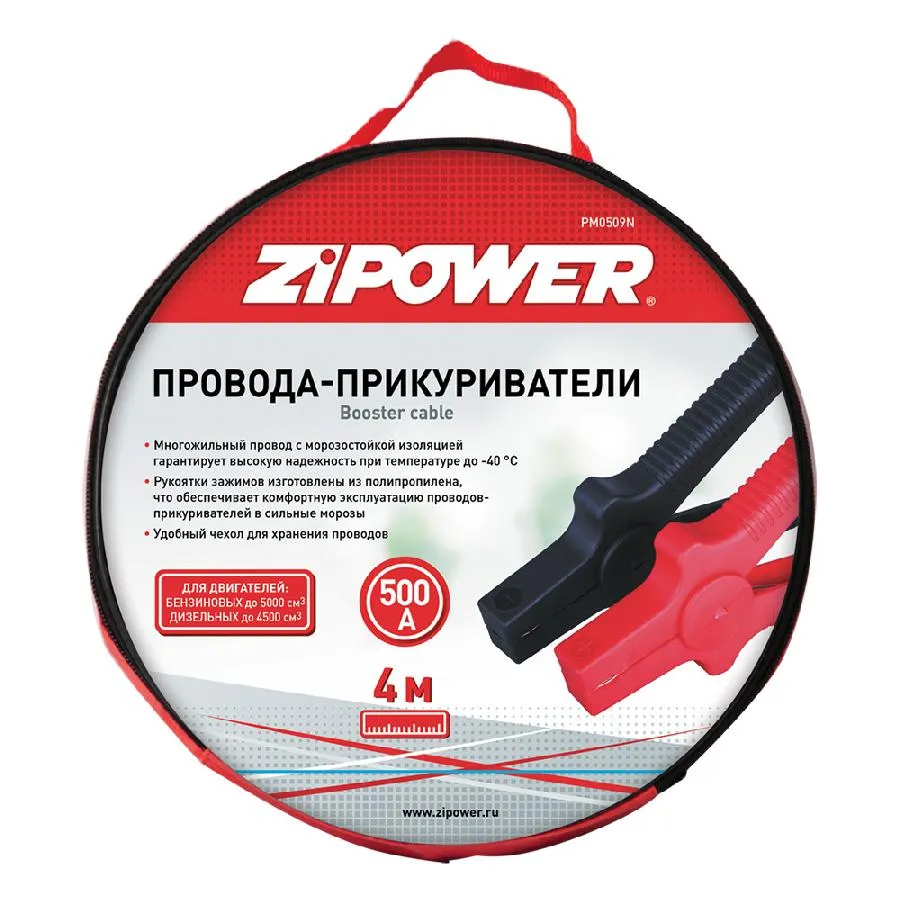 Рукоятки зажимов изолированы термопластом, что делает более удобным эксплуатацию проводов «прикуривания» в сильные морозы.