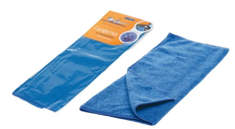 Салфетка из микрофибры двухсторонняя (синяя) 35x40