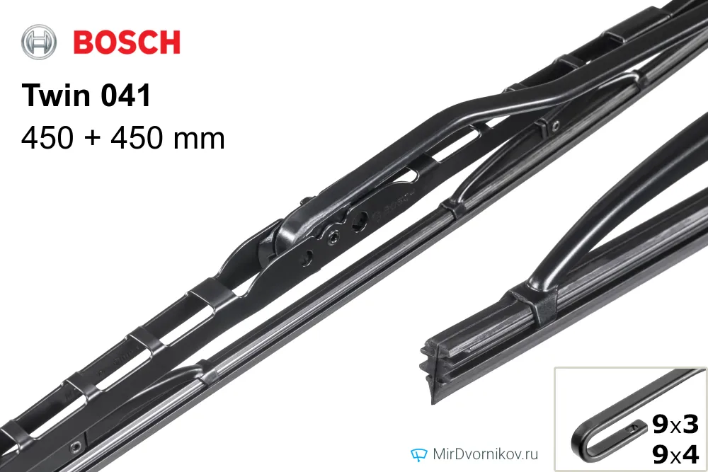 TWIN - серия классических каркасных щеток от компании Bosch. Эти щетки имеют полностью металлический каркас с двойной защитой от коррозии и сверх-точный профиль резинового элемента с двумя чистящими кромками. Стеклоочистители выпускаются как в комплектах по 2 штуки, так и в индивидуальной упаковке. Большинство "дворников" TWIN имеет крепление "крючок", предустановленный на них адаптер Quick-Clip позволяет легко установить щетки на автомобиль.