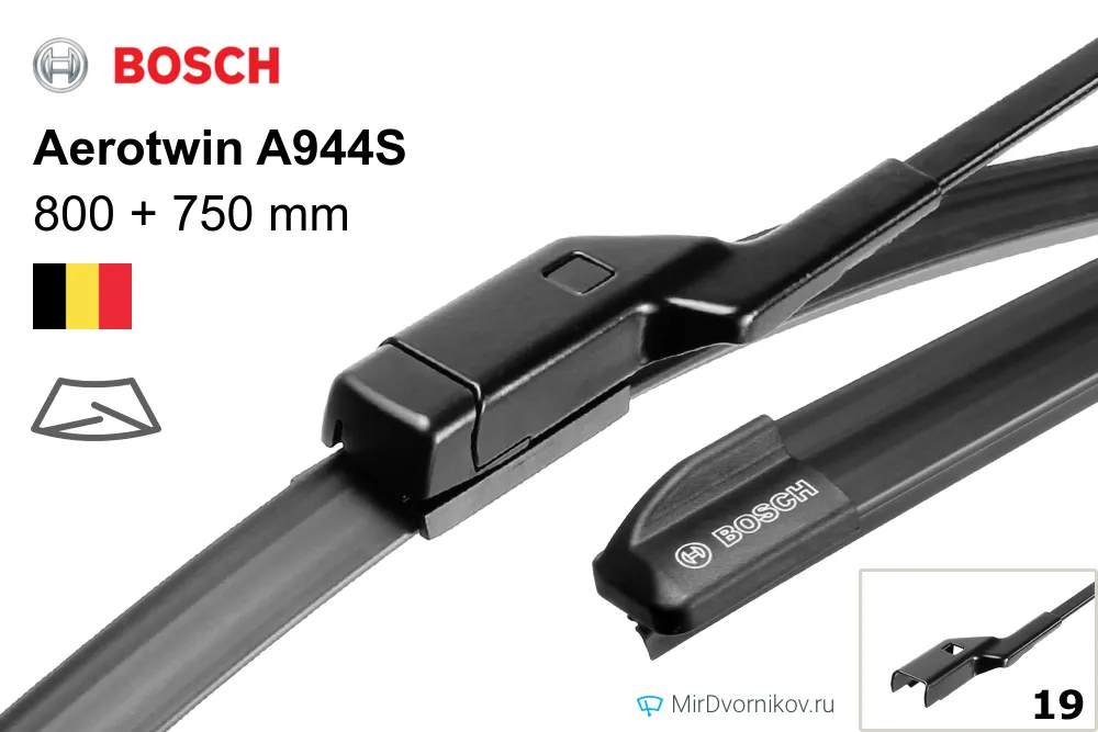 Bosch Aerotwin A944S - это набор из 2-х бескаркасных дворников с длинами 800мм и 750мм.