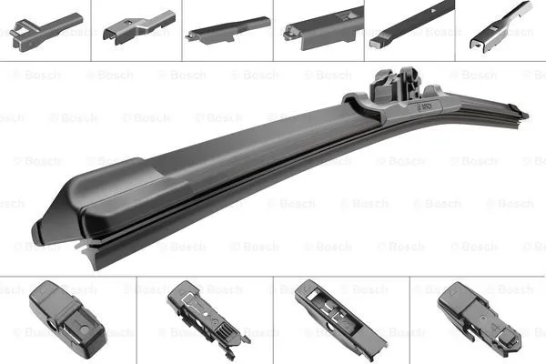 Стеклоочистители Bosch Aerotwin Plus - вариант флагманской серии Bosch Aerotwin, имеющие в комплекте набор из 6 адаптеров для 10 различных типов креплений. В отличии от щёток Bosch Aerotwin с предустановленными специфичными креплениями, они немного сложнее в установке, из-за необходимости установки нужного адаптера. Кроме того, аэродинамические показатели щёток немного ниже, из-за конструкции адаптера и использования универсального симметричного спойлера.