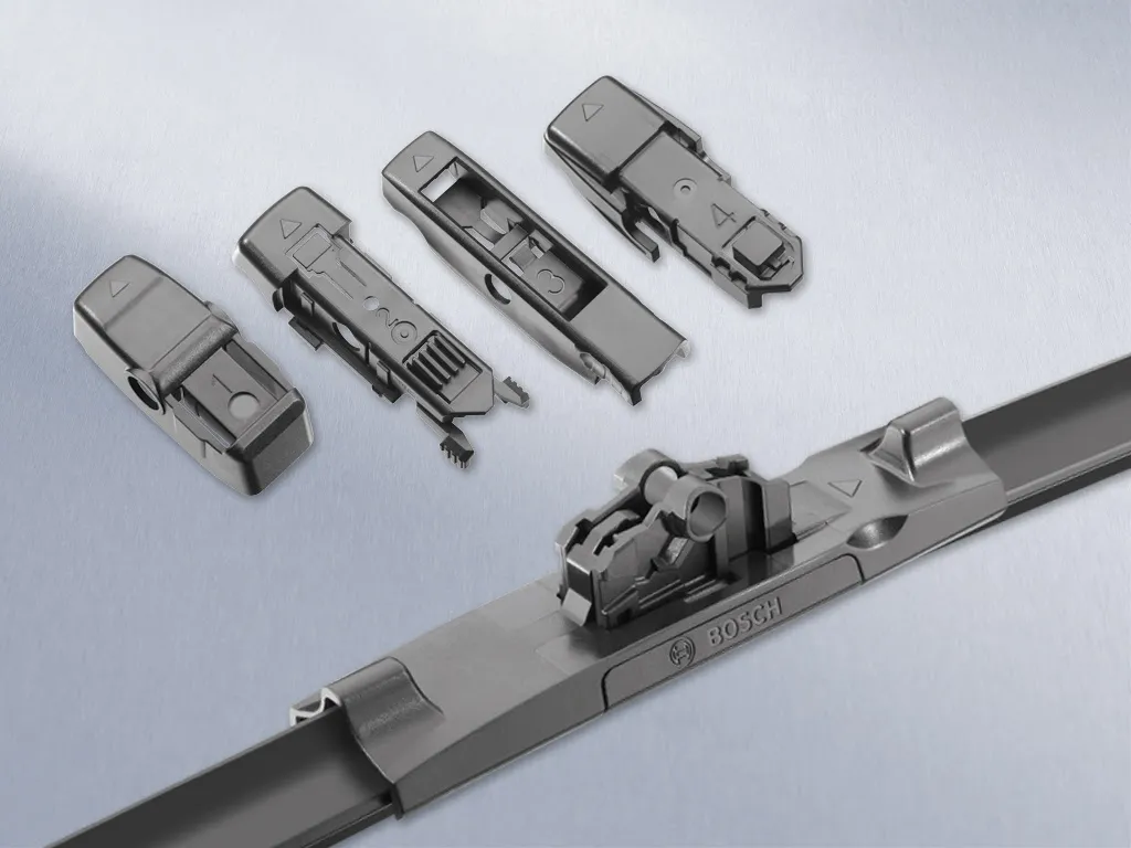 Стеклоочистители Bosch Aerotwin Plus - вариант флагманской серии Bosch Aerotwin, имеющие в комплекте набор из 6 адаптеров для 10 различных типов креплений. В отличии от щёток Bosch Aerotwin с предустановленными специфичными креплениями, они немного сложнее в установке, из-за необходимости установки нужного адаптера. Кроме того, аэродинамические показатели щёток немного ниже, из-за конструкции адаптера и использования универсального симметричного спойлера.