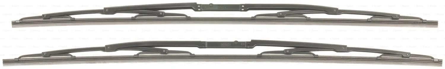 TWIN - серия классических каркасных щеток от компании Bosch. Эти щетки имеют полностью металлический каркас с двойной защитой от коррозии и сверх-точный профиль резинового элемента с двумя чистящими кромками. Стеклоочистители выпускаются как в комплектах по 2 штуки, так и в индивидуальной упаковке. Большинство "дворников" TWIN имеет крепление "крючок", предустановленный на них адаптер Quick-Clip позволяет легко установить щетки на автомобиль.
