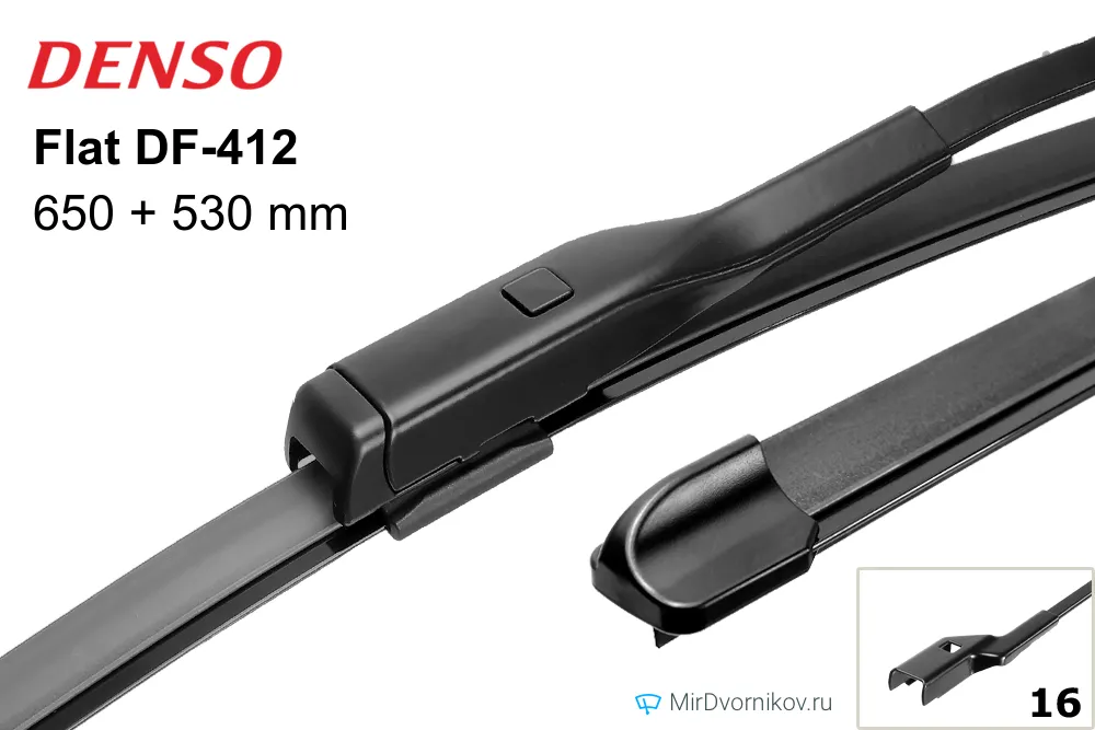 Инженерный шедевр, бескаркасные дворники Denso Flat разработаны, чтобы равномерно прилегать к лобовому стеклу, счищать дождь и грязь при любых погодных условиях. Аэродинамический дизайн и долгий срок службы делают эти стеклоочистители превосходным выбором для автомобилиста. Denso Flat предлагают: