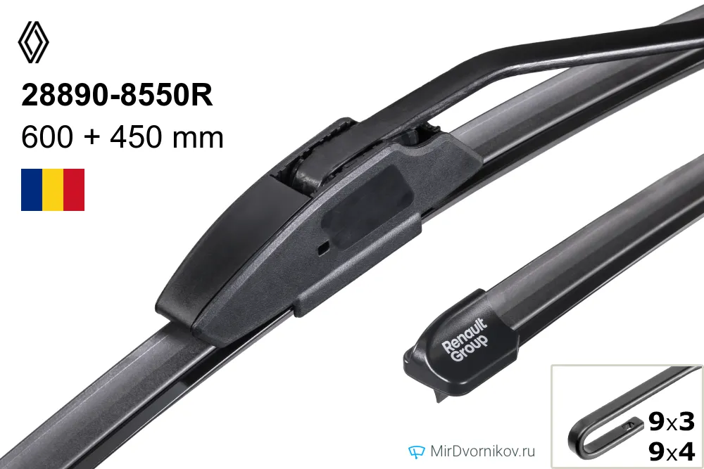 Ассиметричный спойлер бескаркасной щетки предотвращает отрыв щетки от стекла на высоких скоростях потоком набегающего воздуха. Он выглядит как гребень по всей длине, смещённый к одному краю щетки. Ассиметричный спойлер эффективнее симметричного, но менее универсален. Не рекомендуется устанавливать щетки для левого руля с ярко выраженным ассиметричным спойлером на автомобили с правым рулем. Для автомобилей с распашной системой стеклоочистителя предназначены специальные комплекты стеклоочистителей.