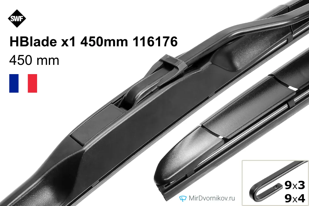 Стеклоочистители SWF HBlade имеют гибридную конструкцию и разработаны в 2014 году для максимального покрытия парка европейских и азиатских автомобилей с креплением «крючок». Они могут использоваться для автомобилей, которые оснащаются на конвейере каркасными или гибридными стеклоочистителями. Все гибридные дворники SWF HBlade поставляются по одной щетке, что упрощает подбор по автомобилю.