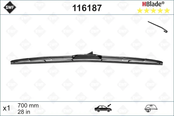 Стеклоочистители SWF HBlade имеют гибридную конструкцию и разработаны в 2014 году для максимального покрытия парка европейских и азиатских автомобилей с креплением «крючок». Они могут использоваться для автомобилей, которые оснащаются на конвейере каркасными или гибридными стеклоочистителями. Все гибридные дворники SWF HBlade поставляются по одной щетке, что упрощает подбор по автомобилю.