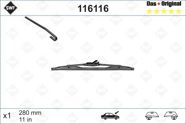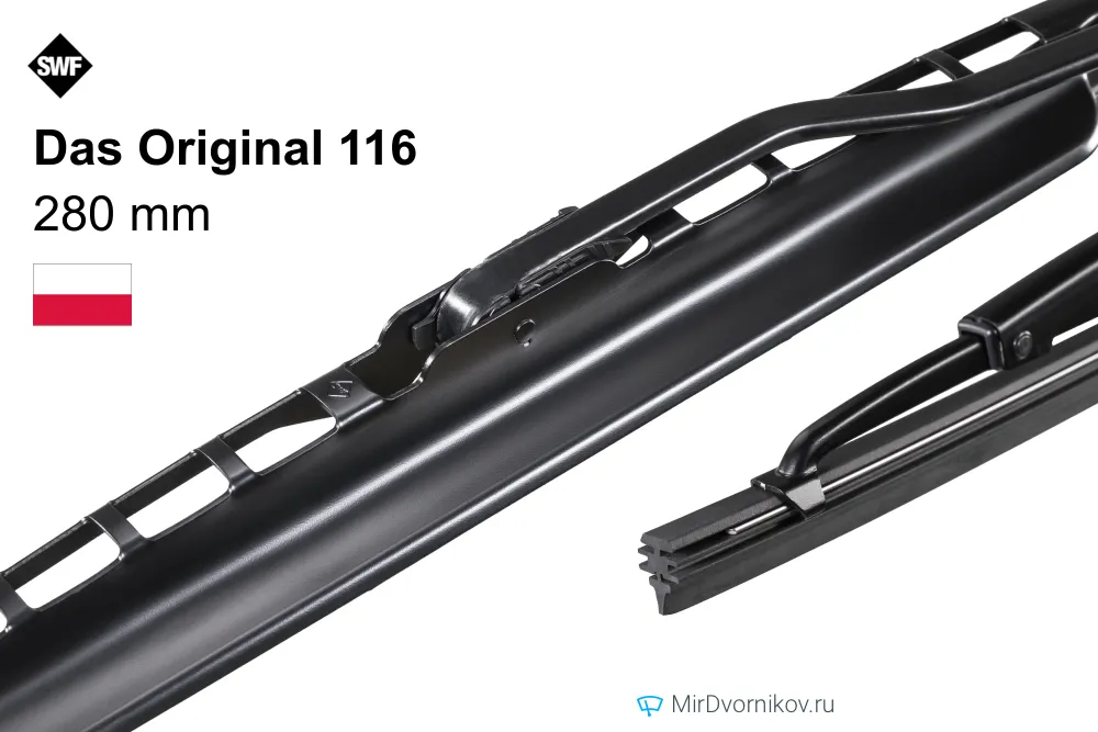 Серия SWF Das Original разработана для максимального покрытия европейского парка автомобилей с каркасными стеклоочистителями. Все щетки Das Original разрабатываются с учётом специфики конкретных автомобилей. Они могут быть оснащены спойлерами, форсунками стеклоомывателя, специфическими креплениями или иметь изогнутую форму для максимального соответствия оригинальным стеклоочистителям. Дворники SWF Das Original имеют полностью металлическую конструкцию и индикатор износа, который сигнализирует об ухудшении свойств резины под воздействием ультрафиолетового излучения солнца.