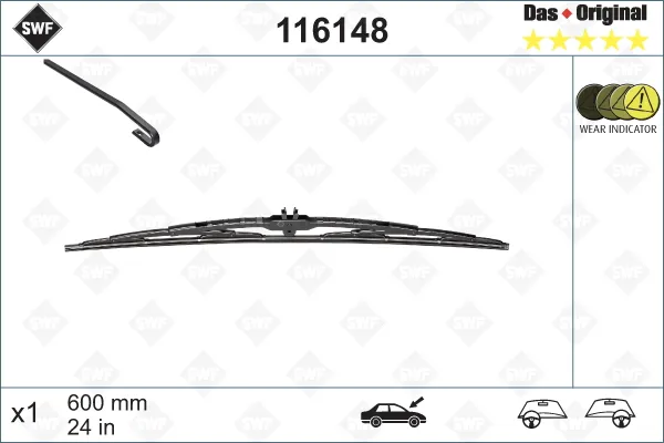 Серия SWF Das Original разработана для максимального покрытия европейского парка автомобилей с каркасными стеклоочистителями. Все щетки Das Original разрабатываются с учётом специфики конкретных автомобилей. Они могут быть оснащены спойлерами, форсунками стеклоомывателя, специфическими креплениями или иметь изогнутую форму для максимального соответствия оригинальным стеклоочистителям. Дворники SWF Das Original имеют полностью металлическую конструкцию и индикатор износа, который сигнализирует об ухудшении свойств резины под воздействием ультрафиолетового излучения солнца.