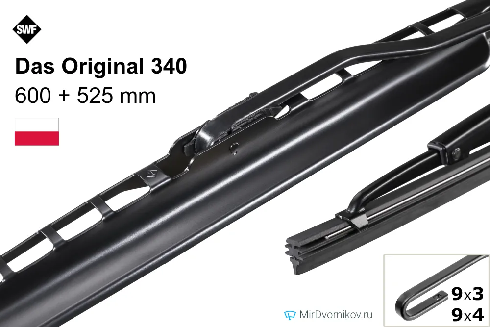 Серия SWF Das Original разработана для максимального покрытия европейского парка автомобилей с каркасными стеклоочистителями. Все щетки Das Original разрабатываются с учётом специфики конкретных автомобилей. Они могут быть оснащены спойлерами, форсунками стеклоомывателя, специфическими креплениями или иметь изогнутую форму для максимального соответствия оригинальным стеклоочистителям. Дворники SWF Das Original имеют полностью металлическую конструкцию и индикатор износа, который сигнализирует об ухудшении свойств резины под воздействием ультрафиолетового излучения солнца.