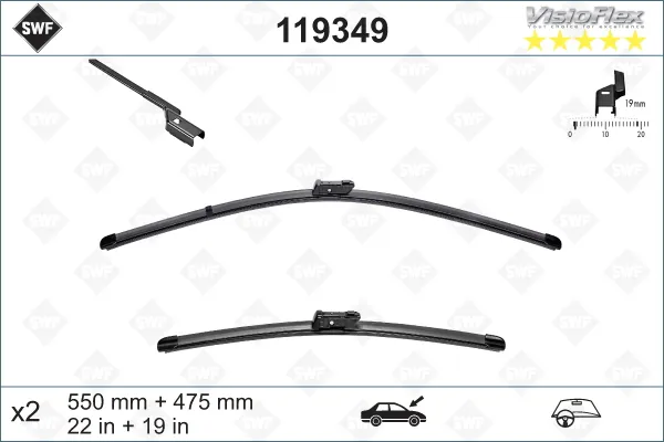 Комплект бескаркасных стеклоочистителей SWF Flat Blade OE SF349