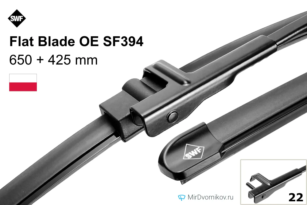 Комплект бескаркасных стеклоочистителей SWF Flat Blade OE SF394