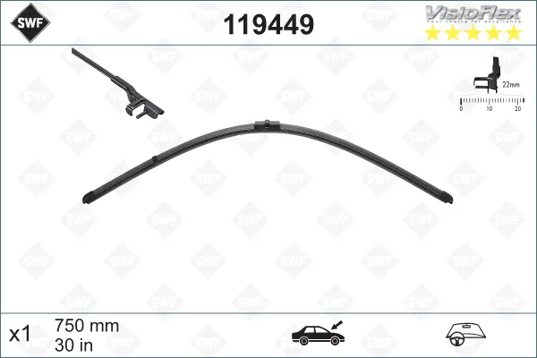 Бескаркасная щетка стеклоочистителя SWF Flat Blade OE SF449
