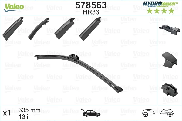Задняя щетка стеклоочистителя Valeo HydroConnect Rear HR33