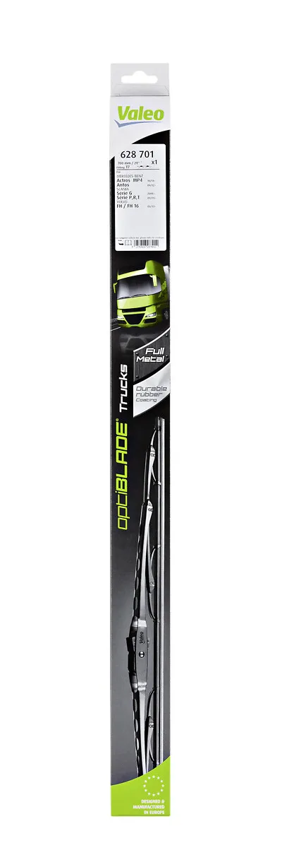 Щетка стеклоочистителя Valeo OptiBlade Trucks 701 - это металлические каркасные щетки с форсунками для грузовых авто. Подходит для таких машин, как Scania G-Series, P, R, T Series, Volvo FH 2, FH16 2, Mercedes-Benz Actros Mp4, Antos, Arocs.