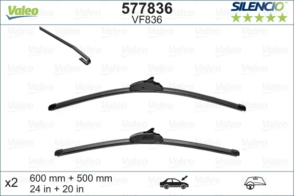 Комплект бескаркасных стеклоочистителей Valeo Silencio Flat VF836