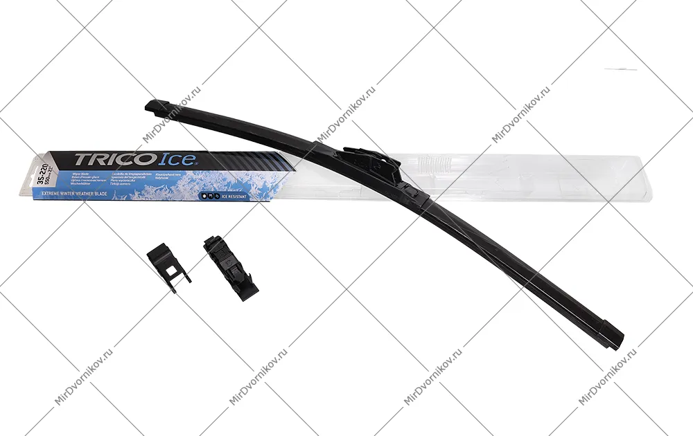 Щетки стеклоочистителя Trico ICE обладают усиленной конструкцией и более толстой резинкой. Эти щетки сочетают плюсы специальных зимних щеток в резиновом чехле и бескаркасных дворников. Еще один плюс серии ICE - сменный элемент крепления. Данные щетки подходят почти для всех автомобилей, включая самые современные, модифицированные крепления VW, Audi и BMW.